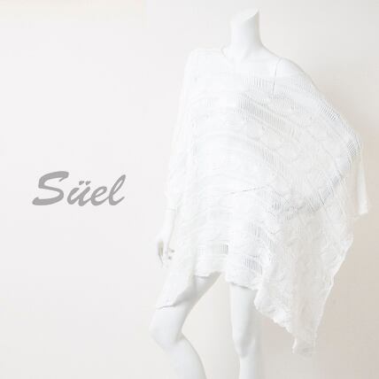 涼しげ爽やかで上品なデザインのニットポンチョです。