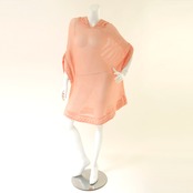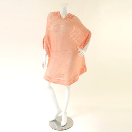 ニットフーディ 七分袖 コーラルオレンジ