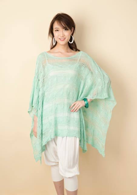 涼しげ爽やかで上品な印象のニットポンチョです。