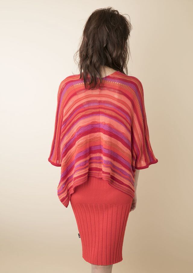 ニットカーディガン七分袖 マルチカラー+ニットワンピースノースリーブ レッド セットアップ