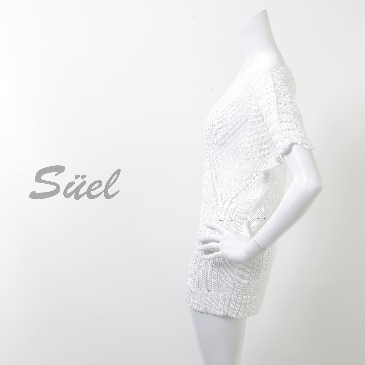 ニットトップス 半袖 ホワイト