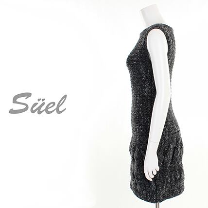 ニットチュニックワンピース ノースリーブ チャコールグレー