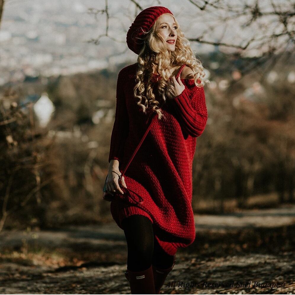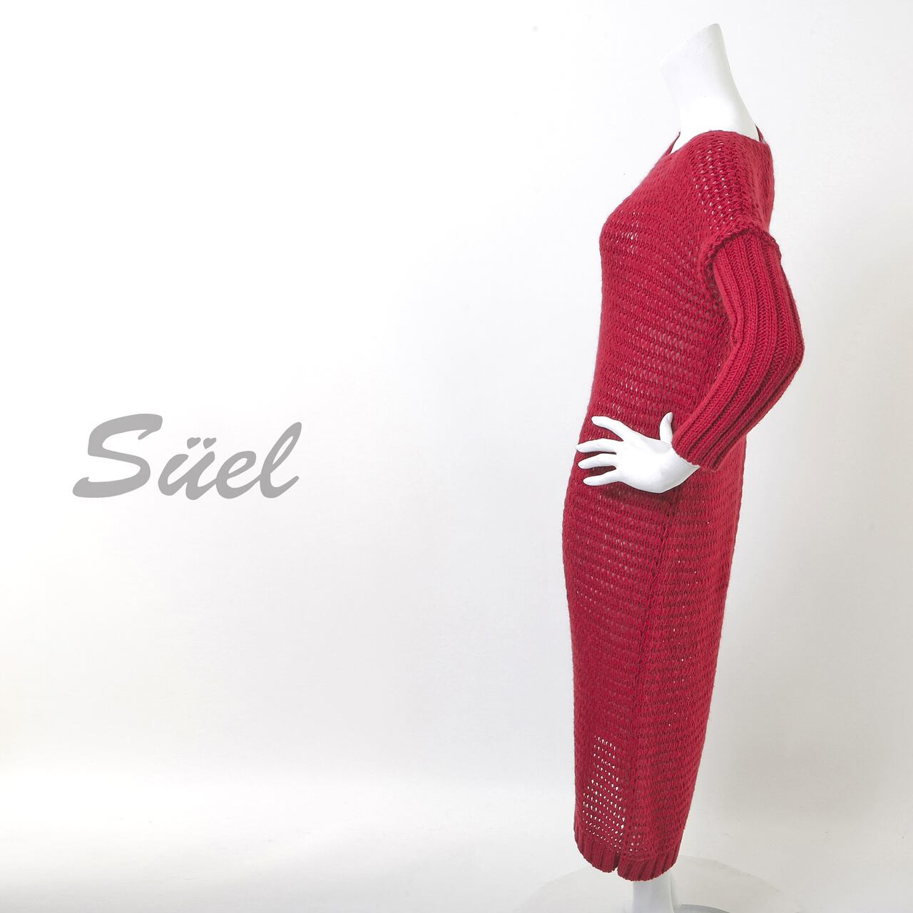 キュートなレッドとフェミニンなシルエットが美しいニットワンピース.。.:*・゜*:.。.☆